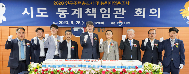 통계청(청장 강신욱)은 5월 26일 대전시 정부대전청사에서 '2020 인구주택 및 농림어업총조사 시·도 통계책임관 회의'를 개최했습니다. 지자체 기획조정실·국장으로 구성된 “시도 책임관 회의”에서 “2020 인구주택 및 농림어업 총조사” 종합적인 추진방향과 총조사 기간에 발생할 수 있는 코로나19, 구제역 등 확산에 대비한 비대면 조사 확대 방안도 함께 논의했습니다. (2020.5.26.)