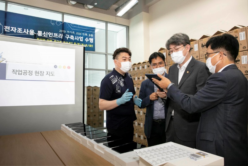 통계청(청장 강신욱)은 17일 경기도 용인시 기흥구 물류센터를 방문하여, 올해 총조사에 사용할 태블릿PC의 사전 작업 현장을 점검하였습니다. (2020.7.17.)